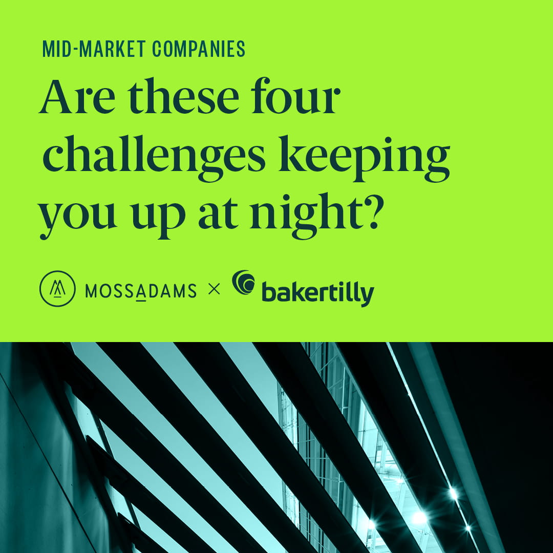 Baker Tilly US, LLP, Baker Tilly Advisory Group, LP and Moss Adams LLP and their affiliated entities operate under an alternative practice structure in accordance with the AICPA Code of Professional Conduct and applicable laws, regulations and professional standards. Baker Tilly Advisory Group, LP and its subsidiaries, and Baker Tilly US, LLP and its affiliated entities, trading as Baker Tilly, are members of the global network of Baker Tilly International Ltd., the members of which are separate and independent legal entities. Baker Tilly US, LLP and Moss Adams LLP are licensed CPA firms that provide assurance services to their clients. Baker Tilly Advisory Group, LP and its subsidiary entities provide tax and consulting services to their clients and are not licensed CPA firms. ISO certification services offered through Baker Tilly Certifications LLC. Investment advisory offered through either Moss Adams Wealth Advisors LLC or Baker Tilly Wealth Management, LLC.