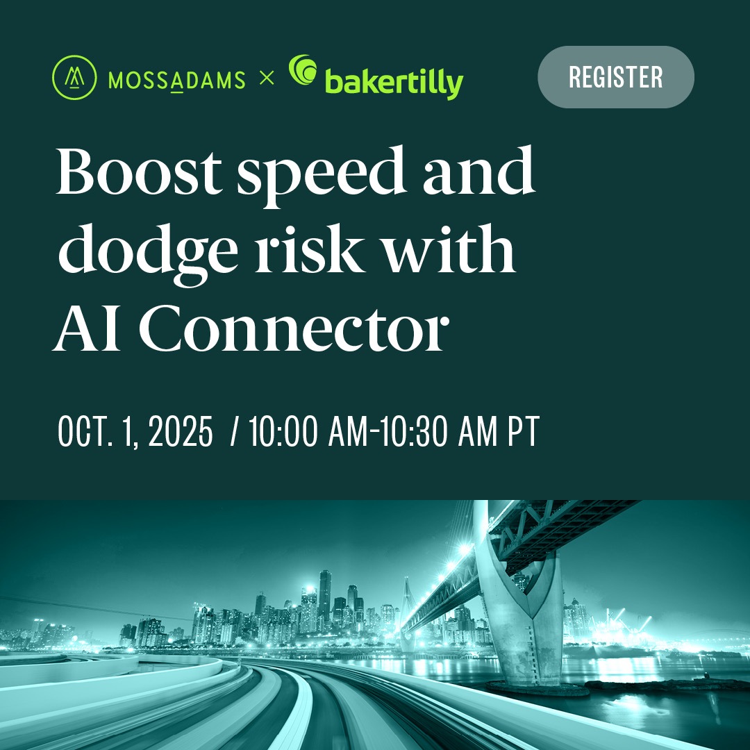 Baker Tilly US, LLP, Baker Tilly Advisory Group, LP and Moss Adams LLP and their affiliated entities operate under an alternative practice structure in accordance with the AICPA Code of Professional Conduct and applicable laws, regulations and professional standards. Baker Tilly Advisory Group, LP and its subsidiaries, and Baker Tilly US, LLP and its affiliated entities, trading as Baker Tilly, are members of the global network of Baker Tilly International Ltd., the members of which are separate and independent legal entities. Baker Tilly US, LLP and Moss Adams LLP are licensed CPA firms that provide assurance services to their clients. Baker Tilly Advisory Group, LP and its subsidiary entities provide tax and consulting services to their clients and are not licensed CPA firms. ISO certification services offered through Moss Adams Certifications LLC. Investment advisory offered through either Moss Adams Wealth Advisors LLC or Baker Tilly Wealth Management, LLC.