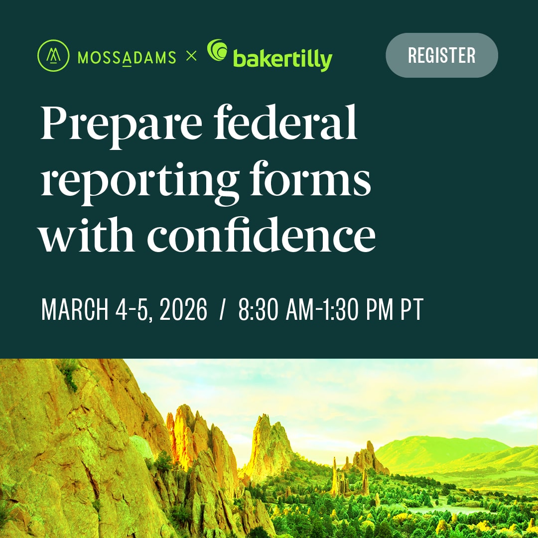 Baker Tilly US, LLP, Baker Tilly Advisory Group, LP and Moss Adams LLP and their affiliated entities operate under an alternative practice structure in accordance with the AICPA Code of Professional Conduct and applicable laws, regulations and professional standards. Baker Tilly Advisory Group, LP and its subsidiaries, and Baker Tilly US, LLP and its affiliated entities, trading as Baker Tilly, are members of the global network of Baker Tilly International Ltd., the members of which are separate and independent legal entities. Baker Tilly US, LLP and Moss Adams LLP are licensed CPA firms that provide assurance services to their clients. Baker Tilly Advisory Group, LP and its subsidiary entities provide tax and consulting services to their clients and are not licensed CPA firms. ISO certification services offered through Baker Tilly Certifications LLC. Investment advisory offered through either Moss Adams Wealth Advisors LLC or Baker Tilly Wealth Management, LLC.