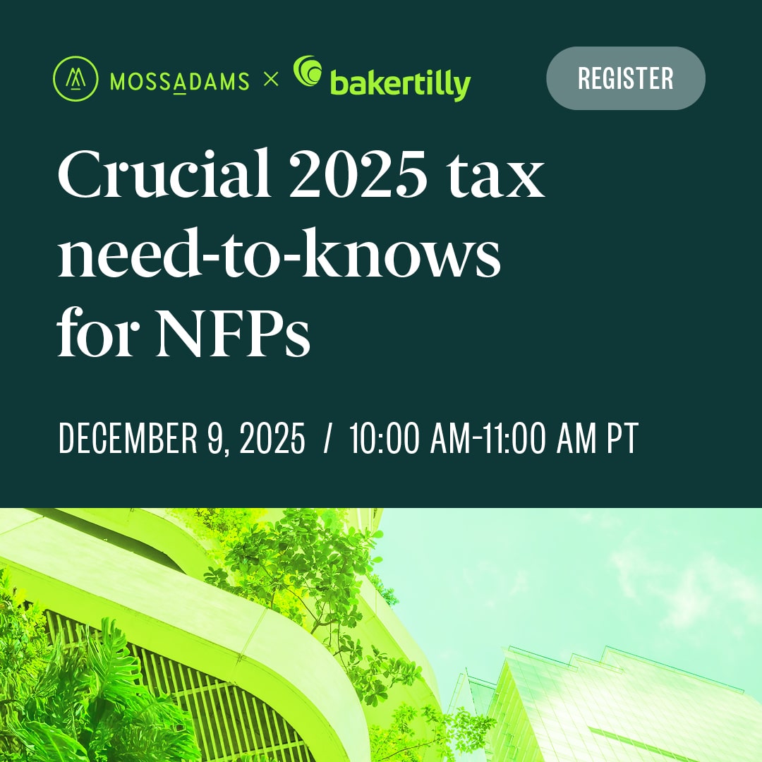 Baker Tilly US, LLP, Baker Tilly Advisory Group, LP and Moss Adams LLP and their affiliated entities operate under an alternative practice structure in accordance with the AICPA Code of Professional Conduct and applicable laws, regulations and professional standards. Baker Tilly Advisory Group, LP and its subsidiaries, and Baker Tilly US, LLP and its affiliated entities, trading as Baker Tilly, are members of the global network of Baker Tilly International Ltd., the members of which are separate and independent legal entities. Baker Tilly US, LLP and Moss Adams LLP are licensed CPA firms that provide assurance services to their clients. Baker Tilly Advisory Group, LP and its subsidiary entities provide tax and consulting services to their clients and are not licensed CPA firms. ISO certification services offered through Baker Tilly Certifications LLC. Investment advisory offered through either Moss Adams Wealth Advisors LLC or Baker Tilly Wealth Management, LLC.