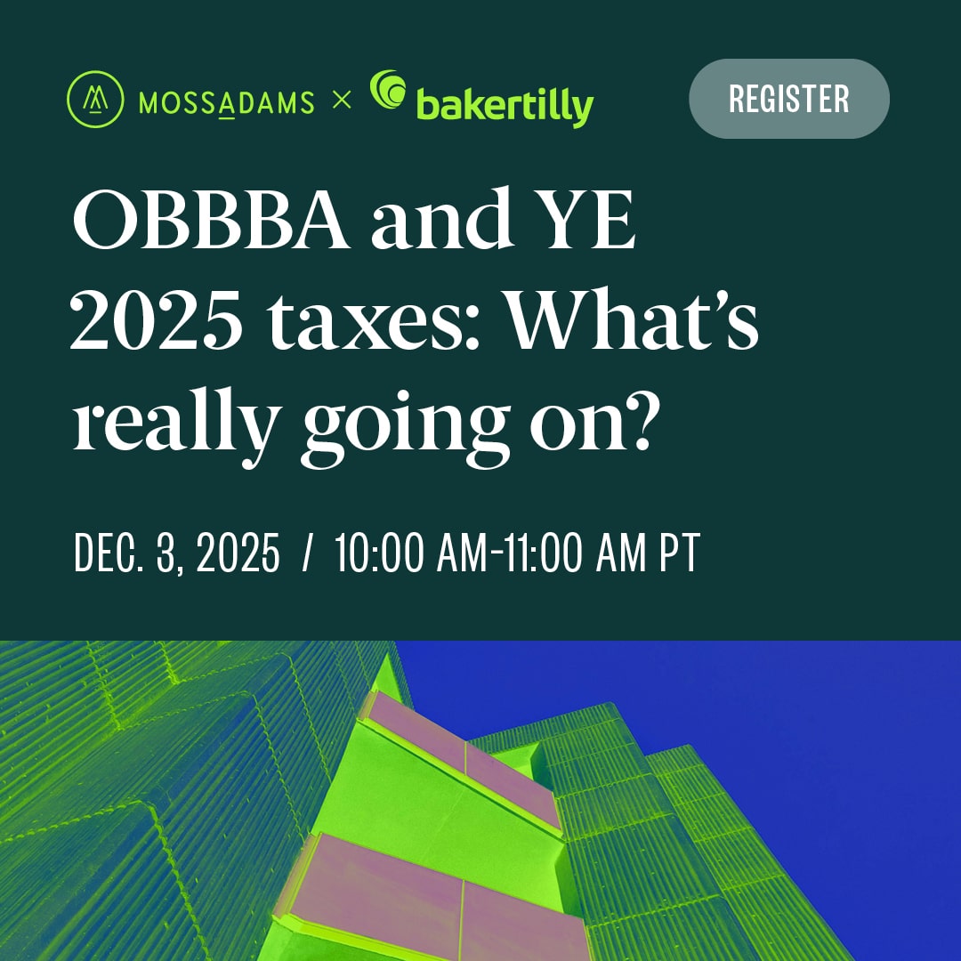 Baker Tilly US, LLP, Baker Tilly Advisory Group, LP and Moss Adams LLP and their affiliated entities operate under an alternative practice structure in accordance with the AICPA Code of Professional Conduct and applicable laws, regulations and professional standards. Baker Tilly Advisory Group, LP and its subsidiaries, and Baker Tilly US, LLP and its affiliated entities, trading as Baker Tilly, are members of the global network of Baker Tilly International Ltd., the members of which are separate and independent legal entities. Baker Tilly US, LLP and Moss Adams LLP are licensed CPA firms that provide assurance services to their clients. Baker Tilly Advisory Group, LP and its subsidiary entities provide tax and consulting services to their clients and are not licensed CPA firms. ISO certification services offered through Baker Tilly Certifications LLC. Investment advisory offered through either Moss Adams Wealth Advisors LLC or Baker Tilly Wealth Management, LLC.